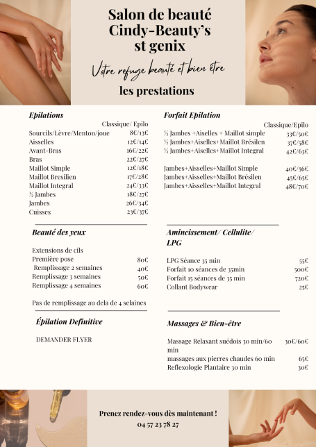 Bienvenue sur la page de votre institut Cindy Beauty's